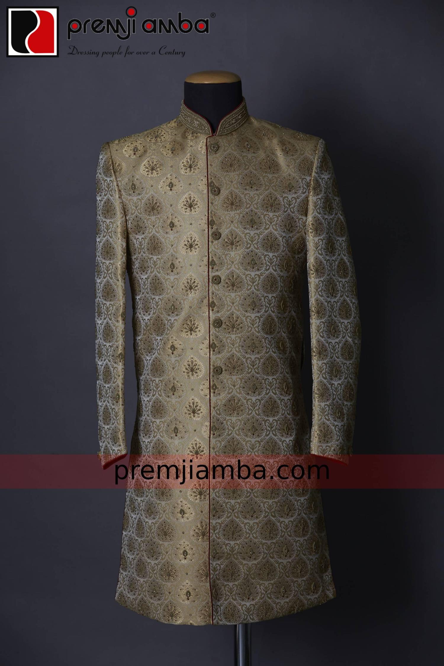 PURE BROCKET SILK SHERVANI WITH ALL HAND JARDOSHI WORK AND LOWAR IS SURVAL MAROON COLOUR.